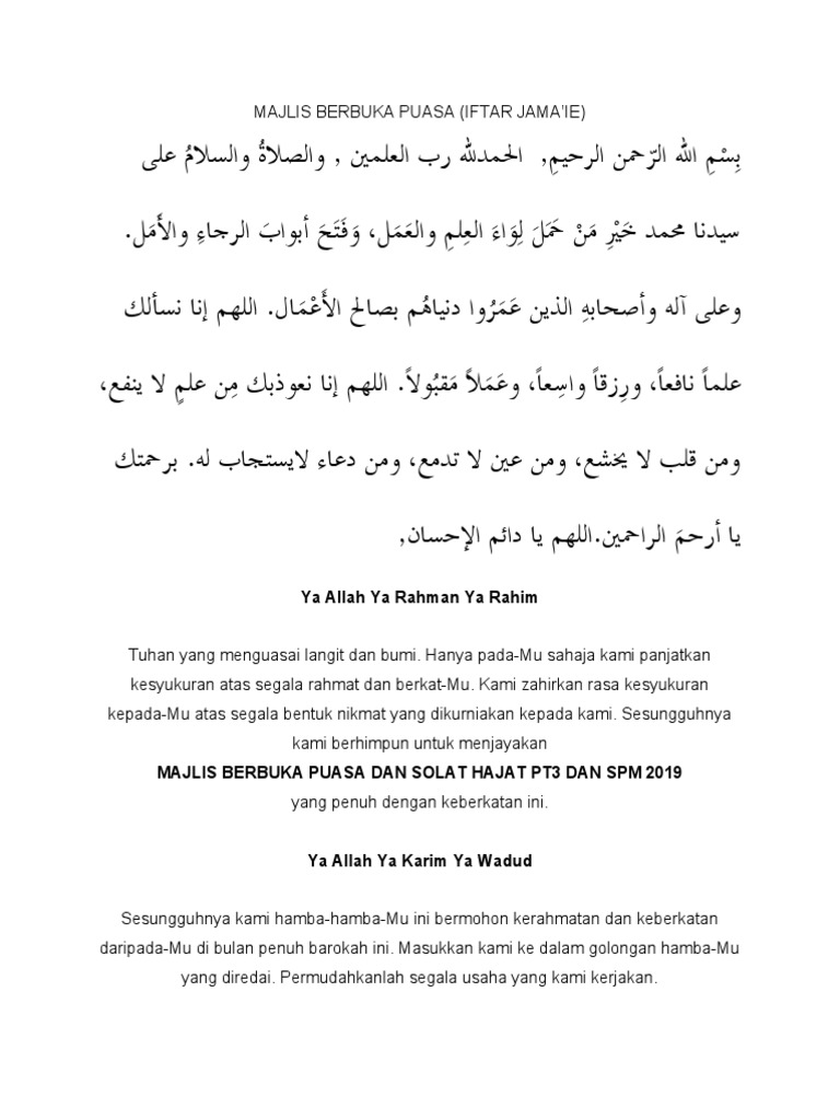 Doa Berbuka Puasa. Ketua Setiausaha Negara dan Ketua Hakim Negara juga hadir dalam majlis berbuka puasa itu. Muat turun halaman 1-33 di AnyFlip.